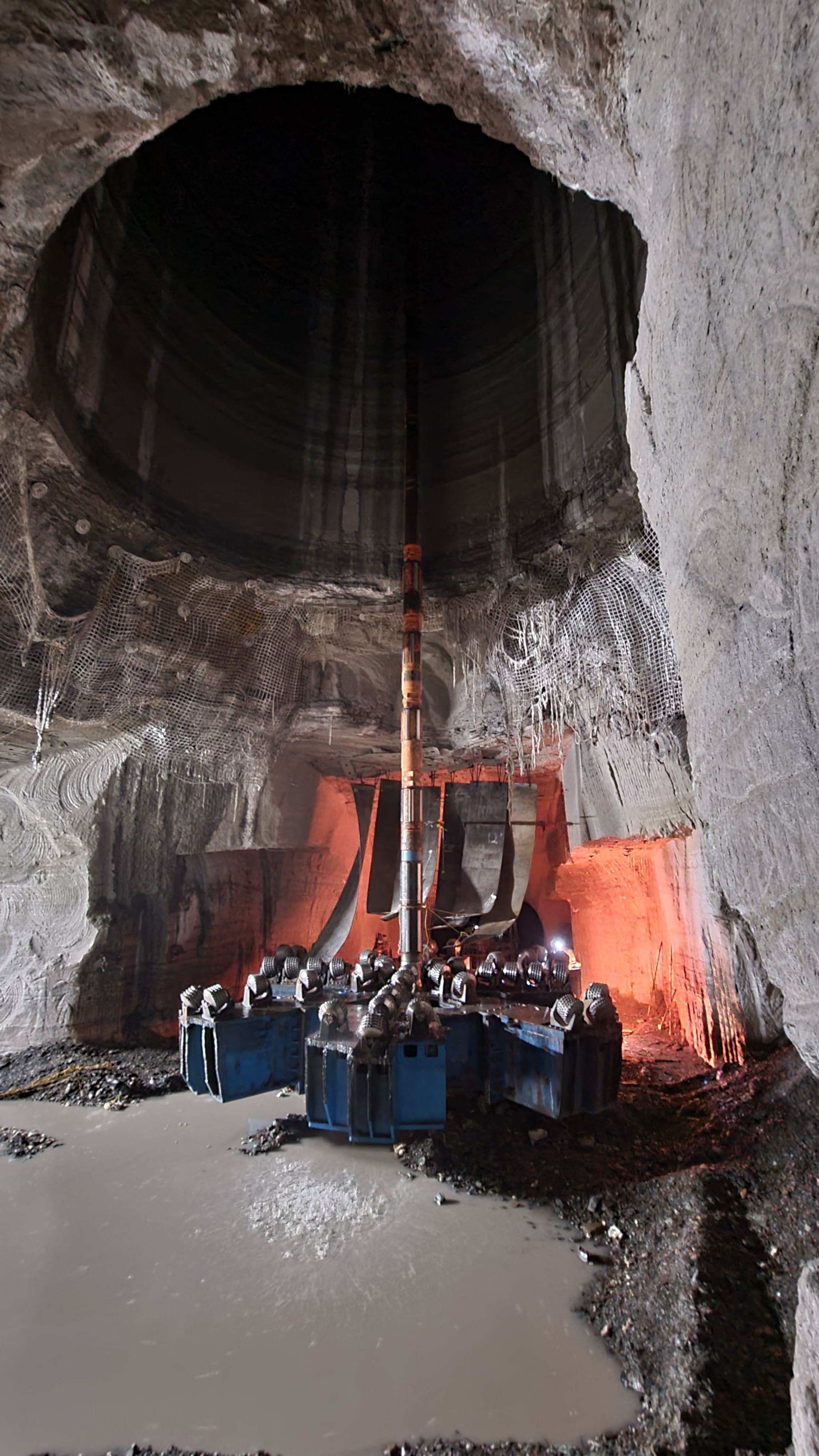 L’alésage du puits a été achevé le 24 avril et les équipes du puits Cementation sont en train d’achever le revêtement du puits. This raise was one of the largest ever pulled in the America’s and was completed without incident. Its
