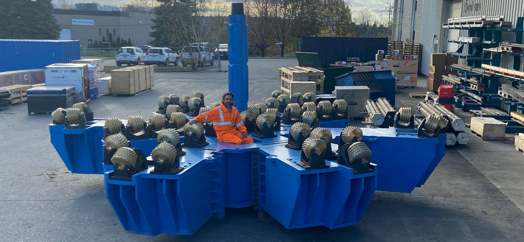 Cementation Au lieu de cela, nous avons proposé une solution de puits foré sur toute la surface avec des diamètres variables pour chaque section. We worked closely with Sandvik to design, engineer and manufacture a reaming head that could be diminished in diameter rather than manufacturing different diameters of outside wings. Final design allowed for five diameter options; maximum of 26.67 ft., down to 24.48 ft, in increments of 6.6 inches. The 26.67 ft. diameter reamer consisted of 12 individual sections, 46 cutters and weighed 136,000 lbs.